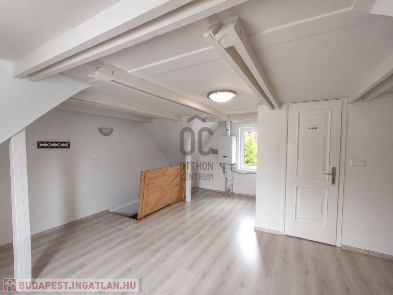 Itt a tetőtérben található a gázkazán, valamint egy zuhanyzós fürdőszoba is.