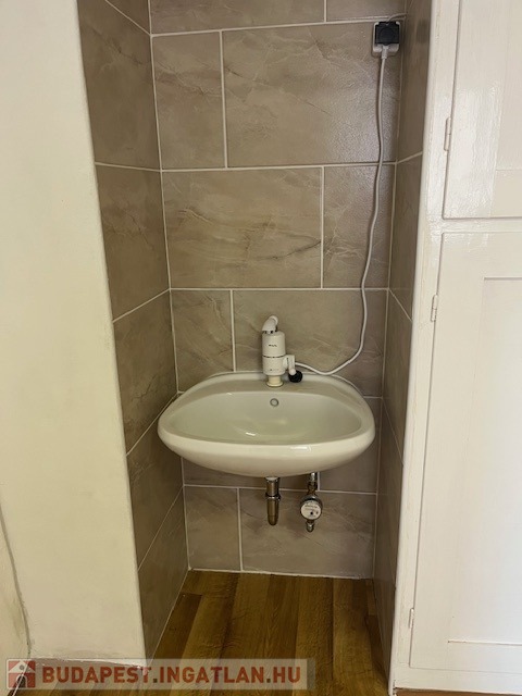 Hideg-meleg vizes kézmosó bent, vizesblokk (zárt) a folyosón.