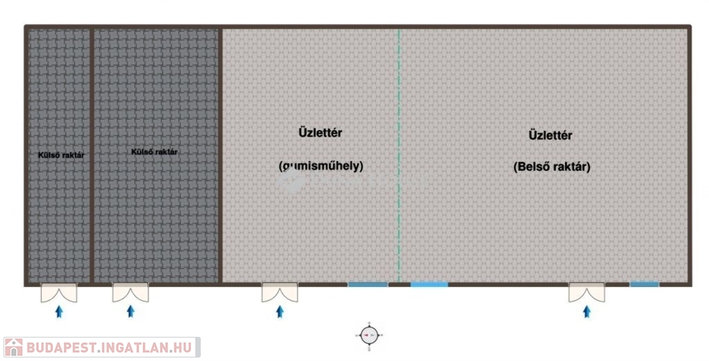 Az ingatlan jelenleg gumiszerelő műhelyként üzemel, mellette raktárhelyiségek találhatók, de elhelyezkedése és kialakítása révén számos gazdasági, kereskedelmi vagy szolgáltató tevékenység végzésére is tökéletesen alkalmas.