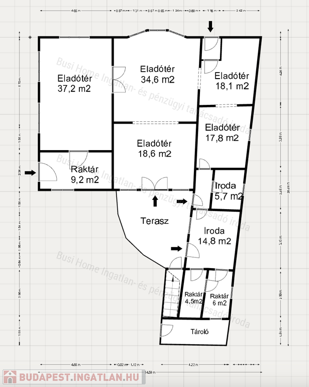 - Az üzlettérbe álmennyezet került, így 300 cm a belmagasság (az eredeti 350 cm)