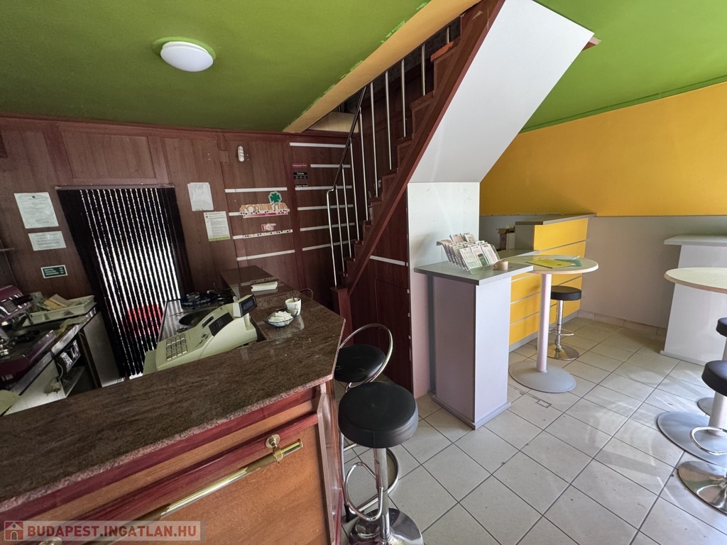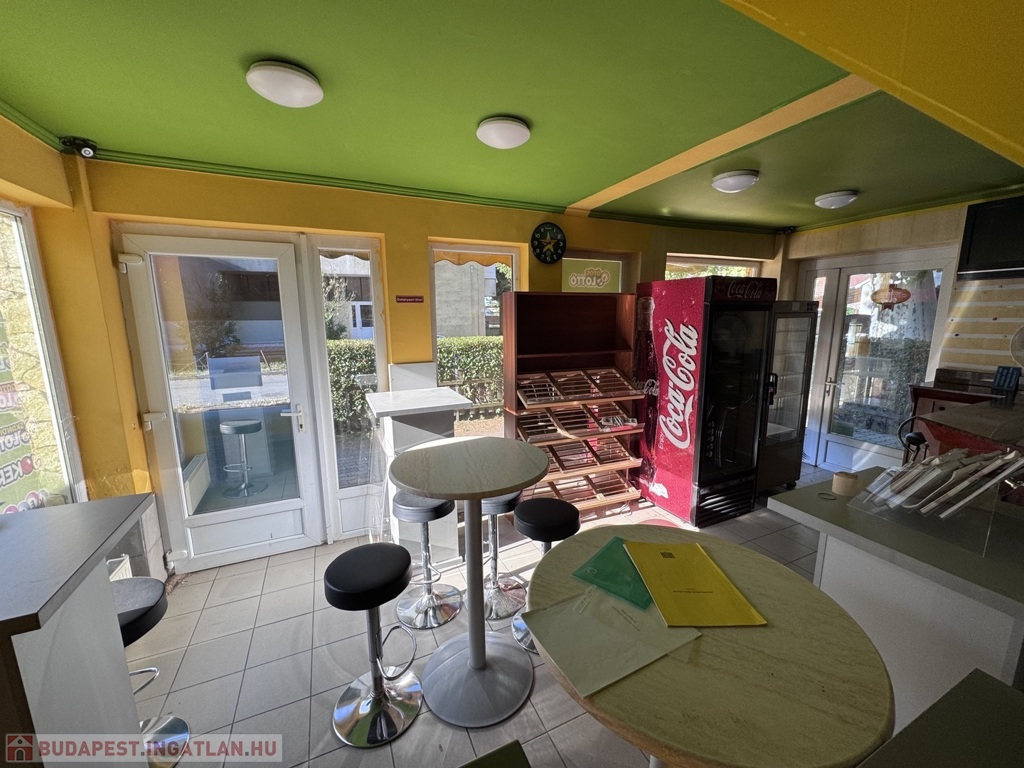 Korábban pékségként, presszóként és lottózóként üzemelt, 1,5 éve zárt be. Az üzlethelyiség azonnal használatba vehető, a teljes berendezés – pult, kávégép, hűtők, bútorok – a vételár részét képezik.