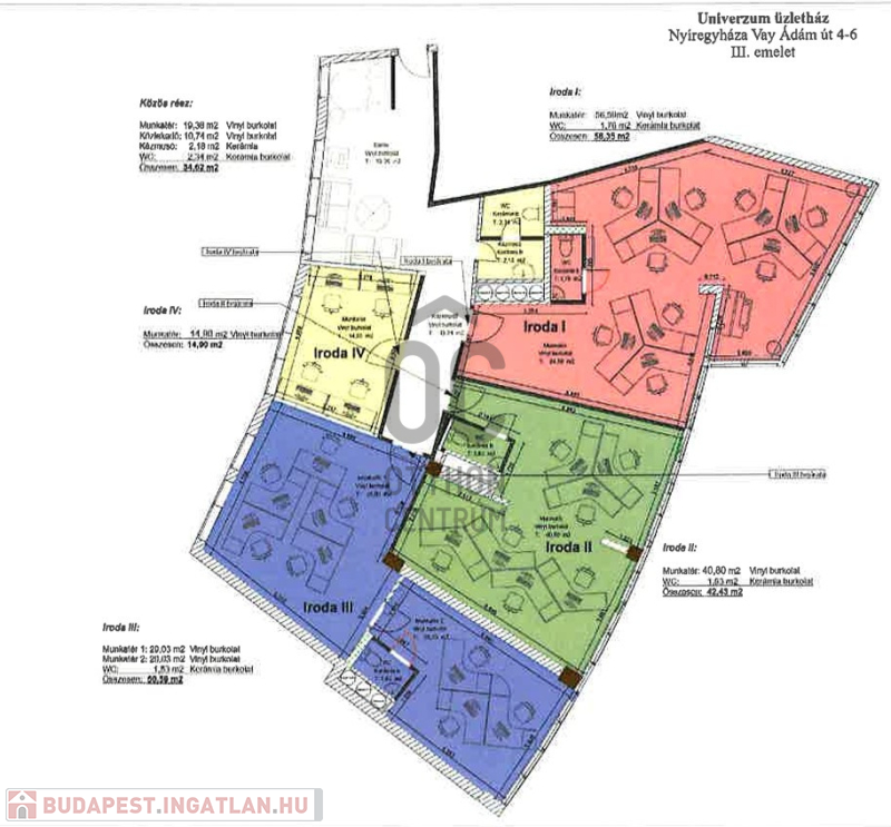 Munkatér mérete: 29 m² – tágas, világos, jól bútorozható
