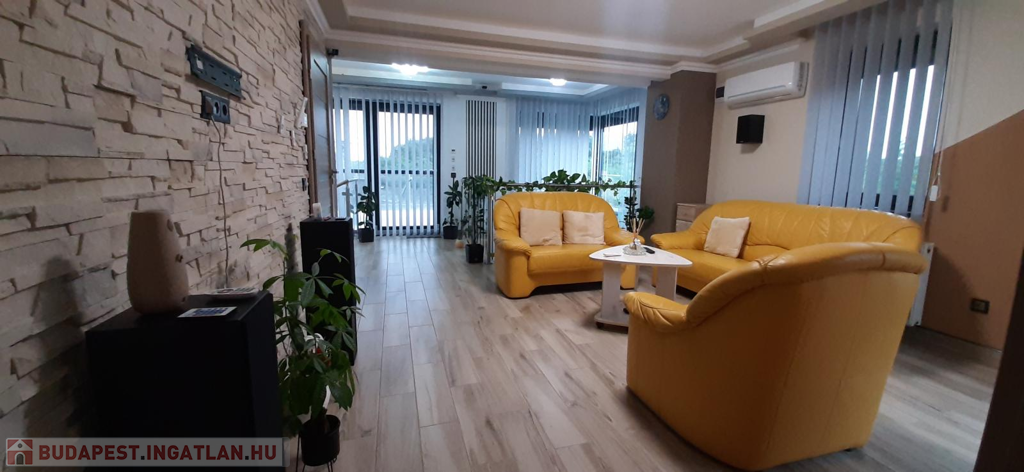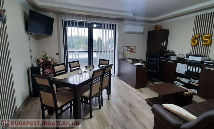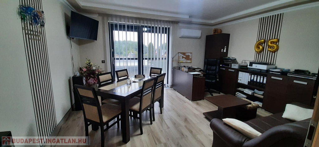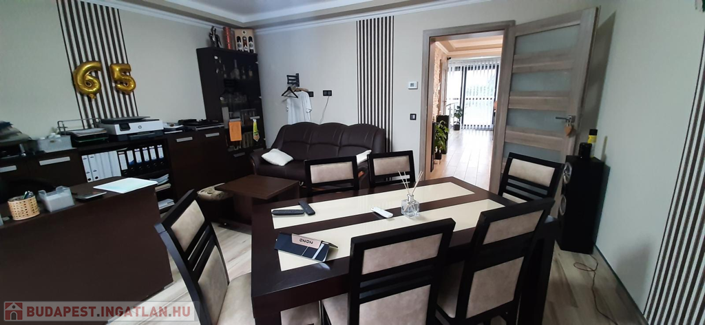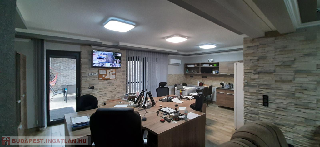 Főbb paraméterek:- antracit színű nyílászáró + elektromos redőny + rovarháló- a nyílászáróknál beépített páramentesítő- gyönyörű burkolatok- 2 fürdőszoba- 4 WC- több alternatívás fűtésrendszer: egyedi gázfűtés, padlófűtés, elektromos fűtés, gázkazán- 5 db klíma- különböző világítástechnikák- Automata kapu- fűthető nagy teraszok- riasztó, térfigyelő kamerarendszer- épített 2 állásos autóbeálló- garázs- az udvaron épített több helységből álló, akár telephelyként is használható épület.1. szint: Tárgyaló + konyha, 1 iroda, fürdőszoba, 2 WC, feljárat az emeletre, valamint egy részben fedett nagy terasz.2. szint: Tárgyaló, 1 iroda, fürdőszoba, 2 WC, L alakú hatalmas üvegkorlátos terasz, + 1 üvegkorlátos terasz.A magas műszaki tartalommal épült, modern ingatlan ideális lehet vállalkozások számára, csendes nyugodt környezetben, mégis közel a városhoz. Akár teljes bútorzattal eladó. Hívjon, ha szeretné megtekinteni! Az ingatlan azonosítója: 60184Érdeklődni: +36204394852 Az ingatlan azonosítója: 60184 Érdeklődni: +36204394852