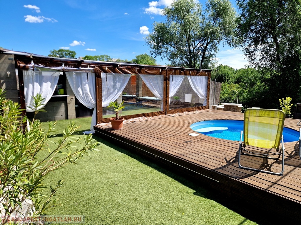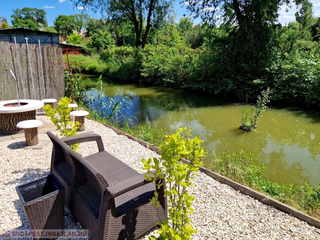 Továbbá az ingatlan területén 2 különálló, gondozott kert is található ahol: hangulatos filagória és medence wellness részleggel biztosítja a pihenést, egy természetes halastó: 20m × 10 méteres vízfelülettel várja a kikapcsolódásra vágyókat.
