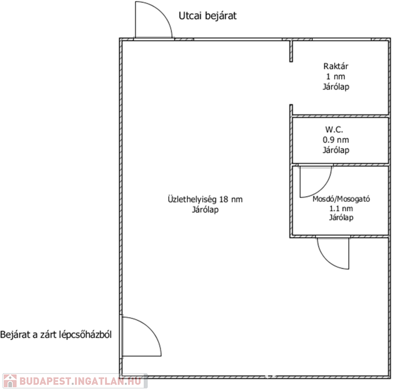 Az üzlethelyiség a zárt lépcsőház felől is megközelíthető, igény esetén lakássá alakítható.