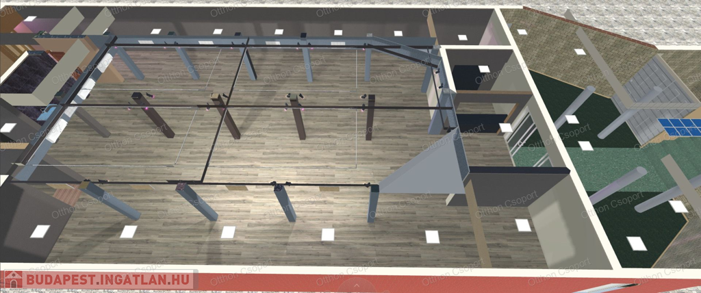 - Műszaki felszereltség: Légcserélő rendszer (1200 m³/h), kétkörös klímarendszer (23 kW + 30 kW), 3x80A ipari áram, 32 kamerás HD biztonsági rendszer, raktárhelyiség, áruszállítási lehetőség, polcozható, gyorsan alakítható belső terek.