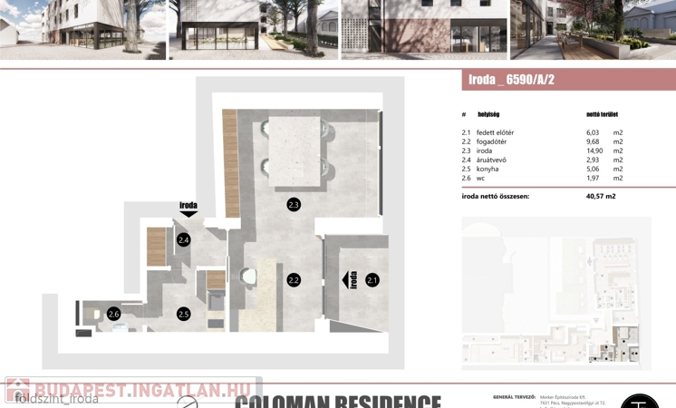 Az épület részletes műszaki tartalma az alábbi linkre kattintva érhető el: https://coloman.hu/muszakitartalom/