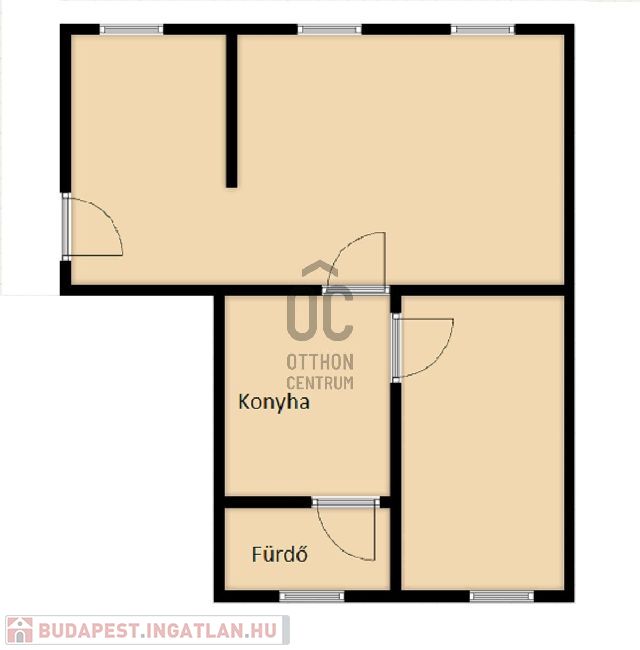 A kialakítása egy tágas és két kisebb helyiség, fürdőszoba, konyha