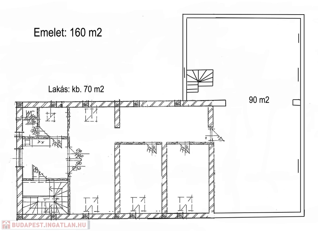 Az emeleten pedig egy 70 m2-es, 2 szobás lakás került kialakításra, ami bármikor kiadható, de irodaként is funkcionálhat.