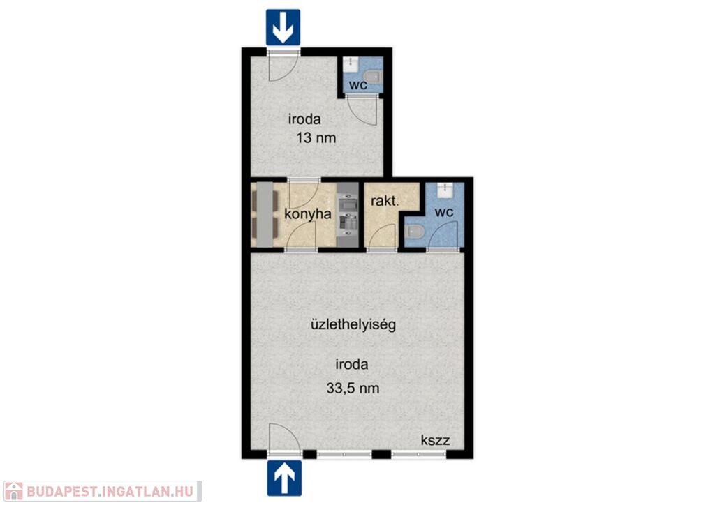 - Üzlethelyiség, iroda helyiség, raktár,2 szeparált WC.