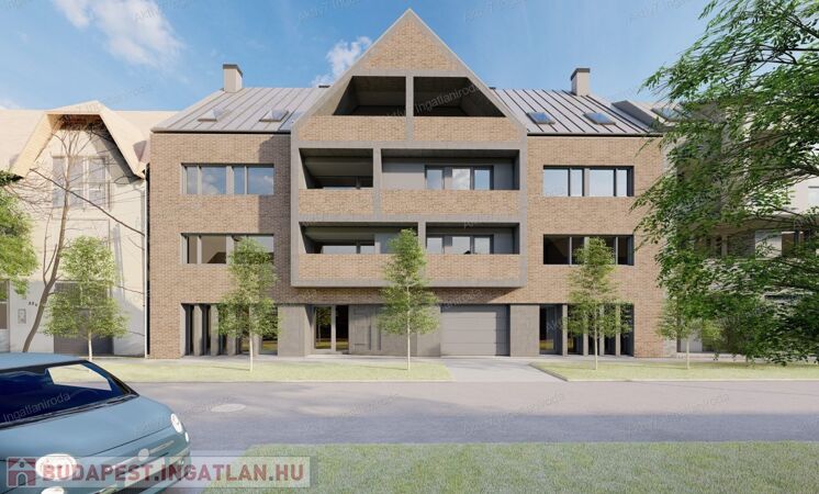 A most épülő társasházunk 4 szintes, liftes, 11 emeleti lakás (mindegyike erkélyes, vagy loggiás), a földszinten 2 lakás ( vagy iroda) kertkapcsolattal, garázsok és beállók kerülnek kialakításra.