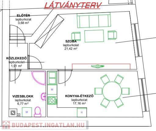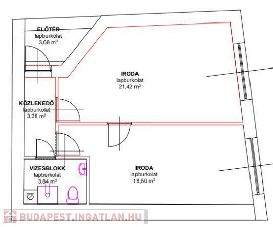 45 nm-es alapterület, amely 2 tágas helyiségből, egy előtérből és egy vizesblokkból áll.