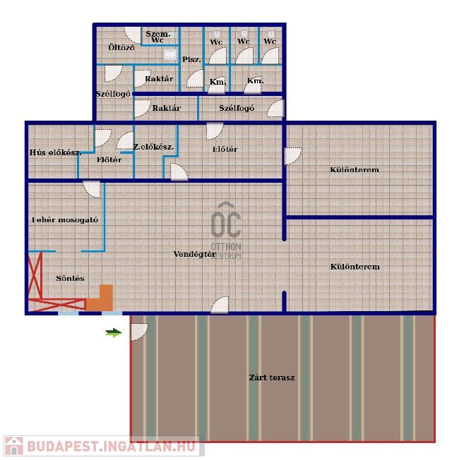 Ha egy olyan vállalkozásba vágna bele amit fejleszteni is lehet akkor is Önnek ajánlom ezt a befektetést, mivel az alsó szinten az étterem teljesen berendezett, bútorozott és gépesített, a HACCP jogszabályai szerint, hús előszítő helyiség, vendég WC,-k, söntéspult, fehér-illetve fekete mosogató, konyha, szárazárú raktár, személyzeti öltöző, szemét tározó, hűtőkamra, különterem, mely jelenleg egy lakrészként funkcionál, stb. A felső szinten a jelenlegi tulajdonos további 3 darab kis garzon apartmant alakított ki, ezek közül egyet be is fejezett, kettő darab pedig félkész állapotban van (vízvezetékek, elektromos hálózat ki van építve).