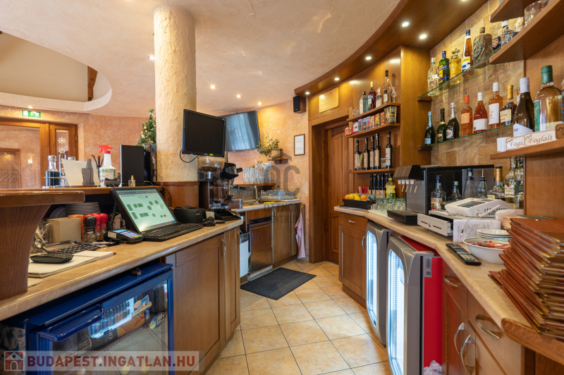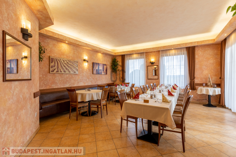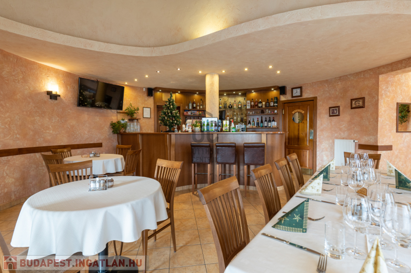Az ingatlan földszinti részén szakmailag elismert, igényes 50-60 fő befogadására alkalmas étterem mű-