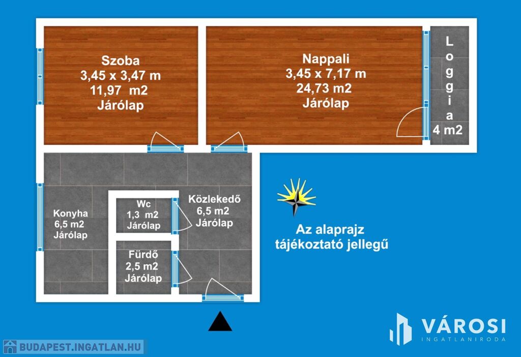 A lakás 1 db nappalival, 1 db hálószobával, 1 db fürdőszobával, külön Wc-vel, közlekedővel, loggiával rendelkezik. Az ingatlan elhelyezkedésre, kialakítása miatt rendkívül sokrétű a felhasználása - akár lakás, vagy befektetési célra -, amely maximálisan kiemeli ezt az ingatlant az átlagos lakások sorából és egyedülálló választássá teszi azt.