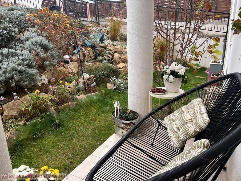A nappaliból közvetlenül egy hangulatos teraszra léphetünk ki, ahonnan sziklakert és egy privát, kizárólagos használatú kertrész tárul elénk – tökéletes helyszín relaxáláshoz, baráti beszélgetésekhez, vagy akár egy homokozó, hinta kialakításához a gyerekeknek.