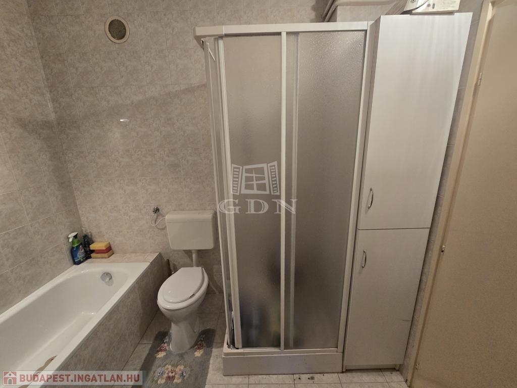 - Nagy méretű fürdőszoba káddal és zuhanyzóval, ahol a WC is helyet kapott.