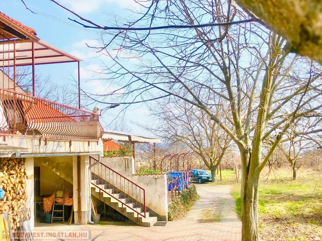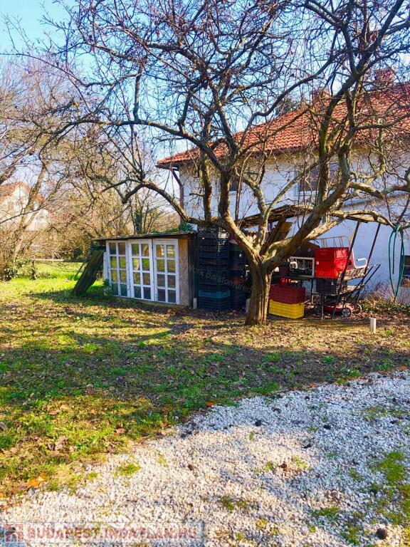 -tágas nappali, kényelmes 20 m2 terasszal és nagy kert résszel, ahol gyümölcsfák egy tároló és egy kis barkács műhely található