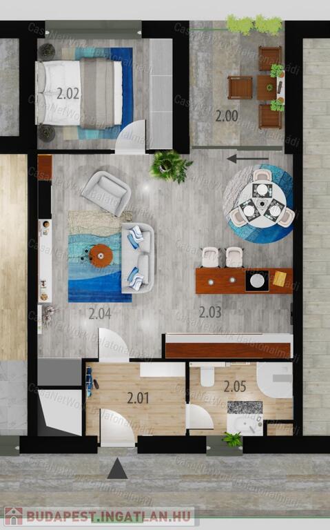 - 51,54 m2 lakótér + 6,96 m2 loggia