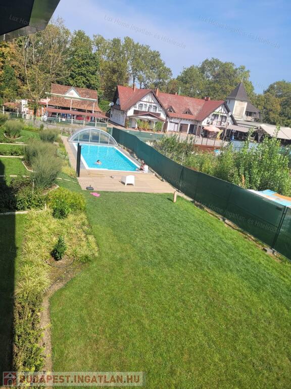-A társasházhoz tartozik egy impozáns, 12 méteres kültéri medence is, ahol a nyári hőségben felfrissülhet, vagy élvezheti a nap sugarait a vízpart közelében. És ha mégis inkább a Balatonban úszna, a tó közelsége révén ezt pillanatok alatt megteheti.