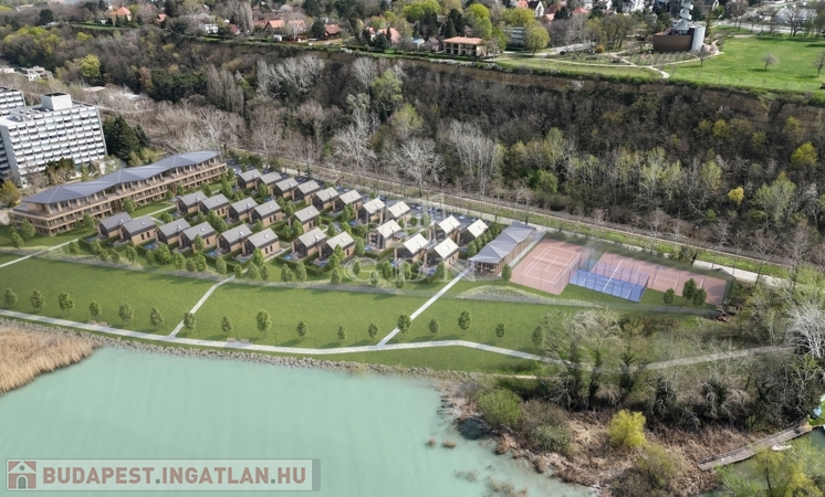 Modern letisztult építészet, tömegformálás, Balatonra tájolt panorámás teraszok.