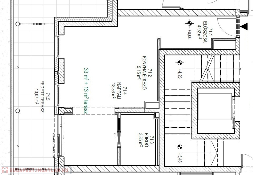 Ez a garzonlakás 33nm alapterületű+ tartozik hozzá egy 13nm-es fedett terasz is.
