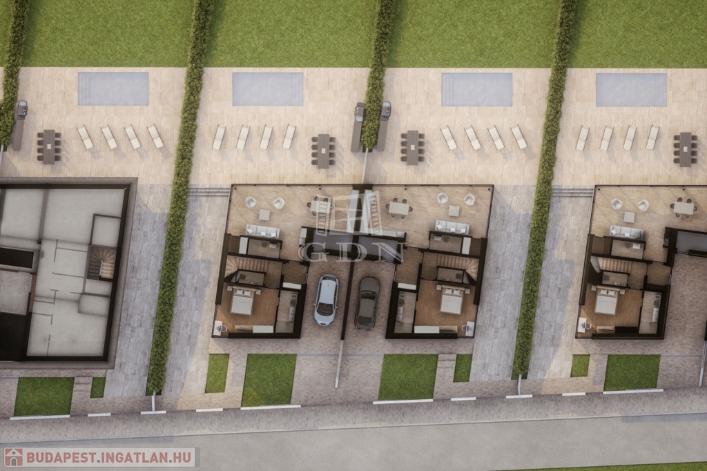 Egy fedett gépkocsi beálló, egy kültéri parkoló.