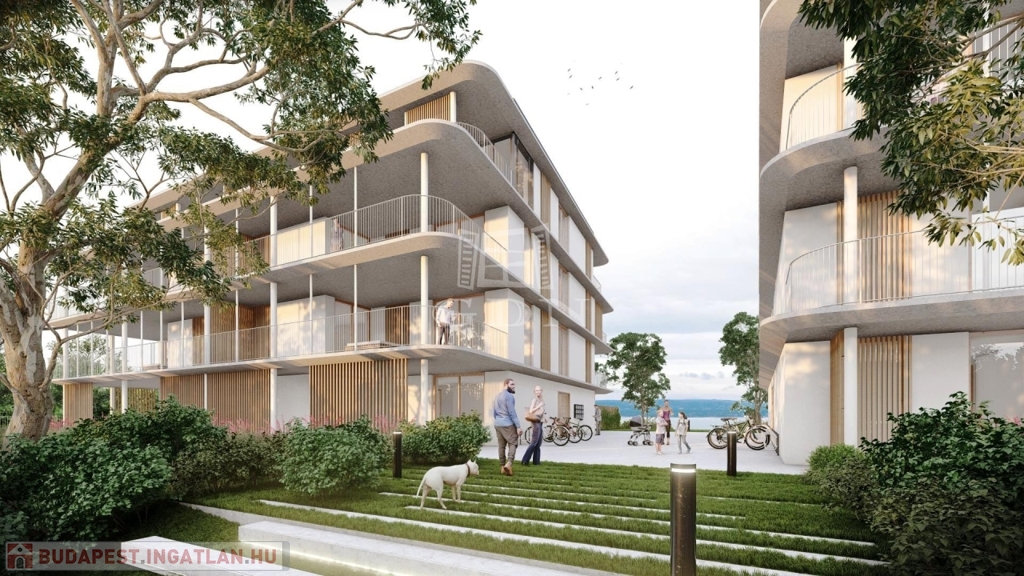Az épületegyüttes a földfelszín alatt, a pinceszinten (parkoló szinten) egy tömeget képez, mely a földfelszín felett három épületszárnnyá (lépcsőházzá) válik szét. Az épületszárnyak közötti sétányokon burkolt terek és kiemelt kazettákban elhelyezett intenzív zöldtetők kerülnek kialakításra. A Balaton felé néző közös használatú kertrészben pedig egy szintén közös használatú medence is helyet kap.