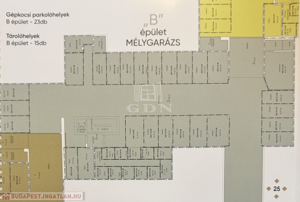- A mélygarázs és az épület szintjei közti közlekedést 8 személyes látványliftek fogják segíteni