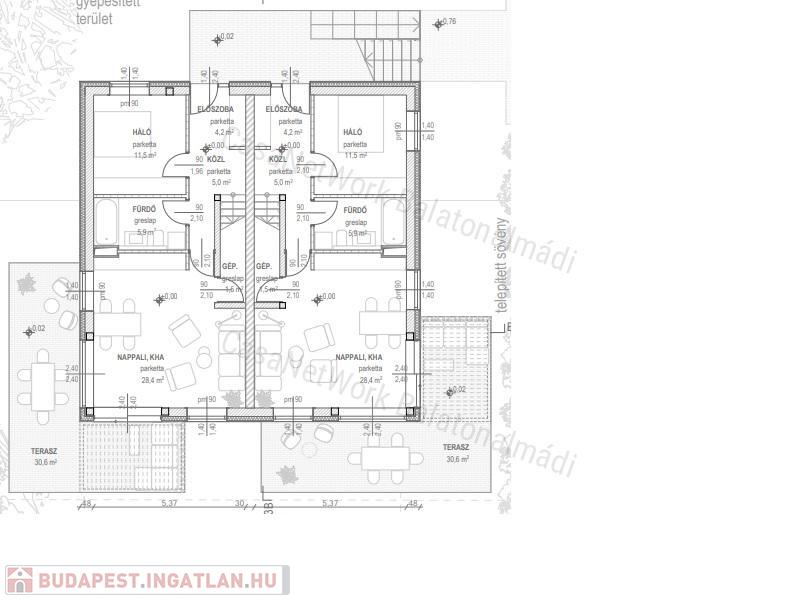 - a lakások mindegyike terasszal és cc. 200 m2-es kerttel rendelkezik