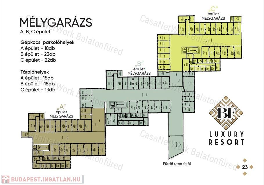 a terepszint alatt 62 db mélygarázzsal lesznek összekötve, 2 db háromszintes és