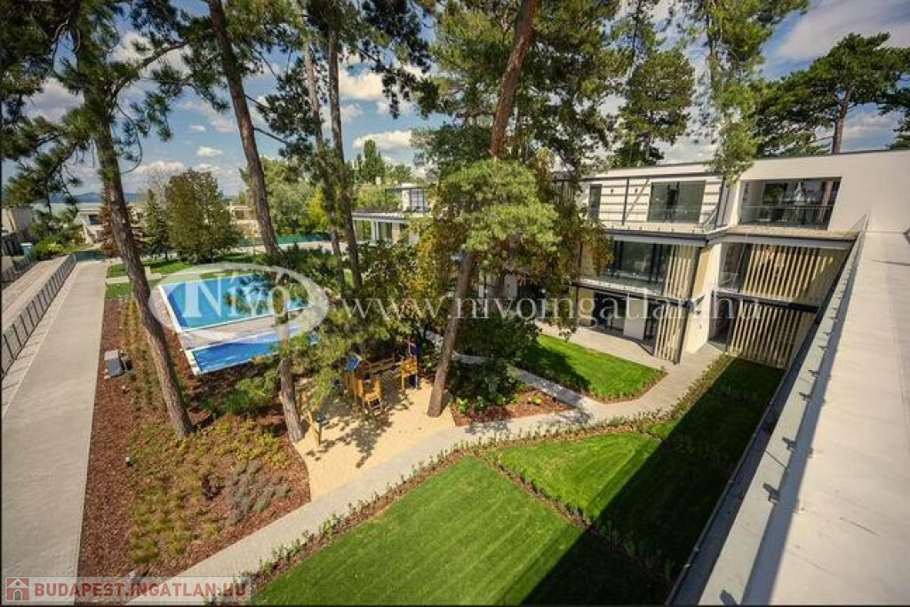 A terület 5336 m2-es, bekerített, ősfás, parkosított telek, balatoni panorámával. Az itt lakók kényelmét felnőtt-és gyermekmedence is szolgálja.