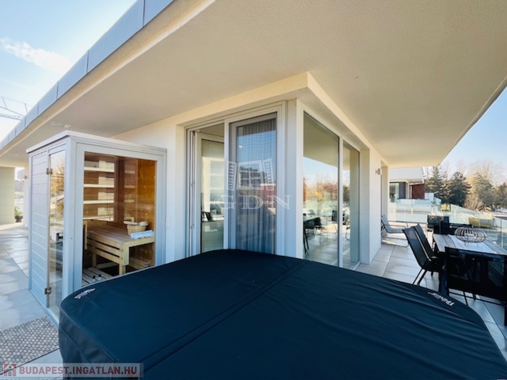 Az exklusív lakóingatlan elegáns nappali életteret, valamint kettő hálószobát és két fürdőszobát kínál a maximális komfortérzet biztosításához. A körpanorámás terasz pedig minden lehető luxust biztosít használói számára, s a teraszon bőven elférnek a szauna,a jakuzzi, valamint az étkezést és a pihenést szolgáló bútorok is.