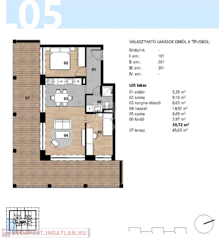51 nm-es, 3 szobás, 46 nm-es terasszal, elismert szakmai háttérrel rendelkező tervezőiroda által megálmodott lakás, fűtéskész, 2026-ban történő átadással eladó.