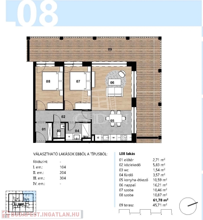 62 nm-es, 3 szobás, 47 nm-es terasszal, elismert szakmai háttérrel rendelkező tervezőiroda által megálmodott lakás, fűtéskész, 2027-ben történő átadással eladó.