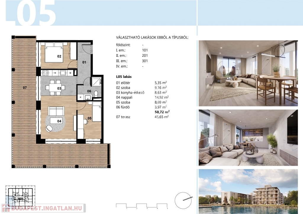 50 nm-es, 3 szobás, 45 nm-es terasszal, elismert szakmai háttérrel rendelkező tervezőiroda által megálmodott lakás, kulcsrakész, 2026 márciusban történő átadással eladó.