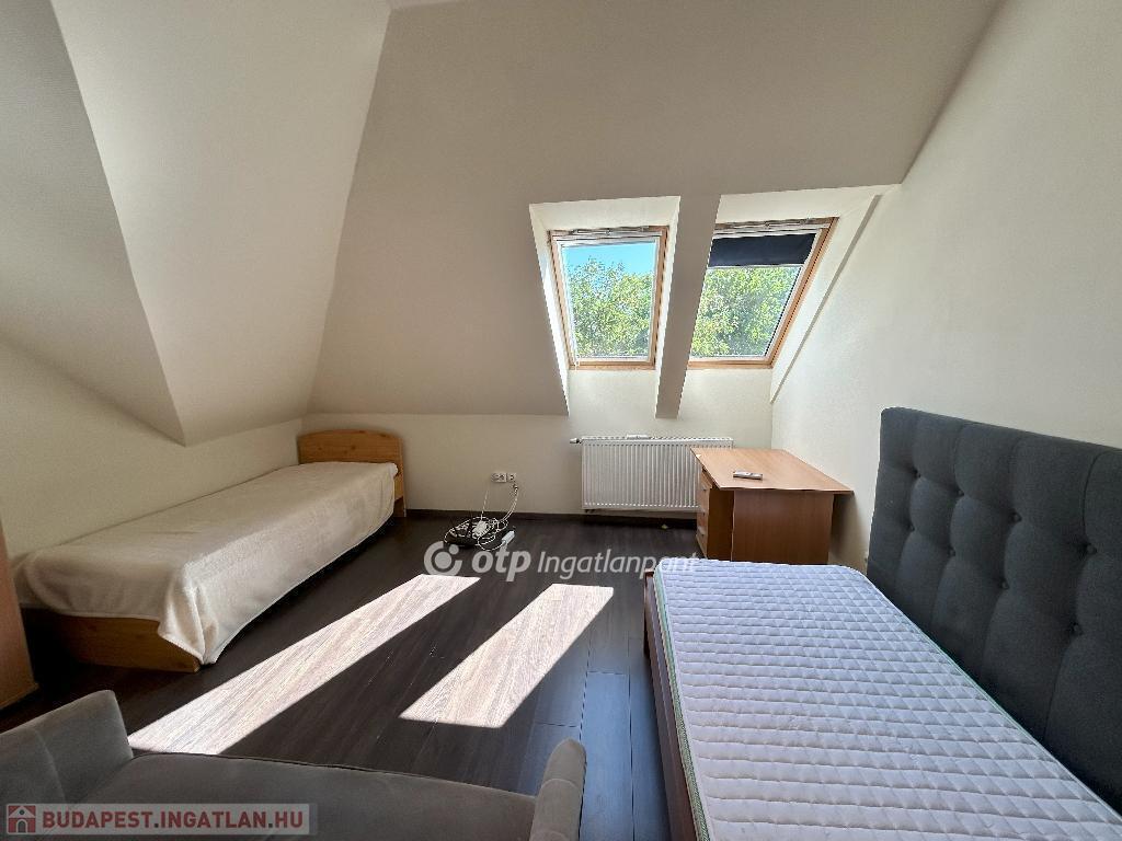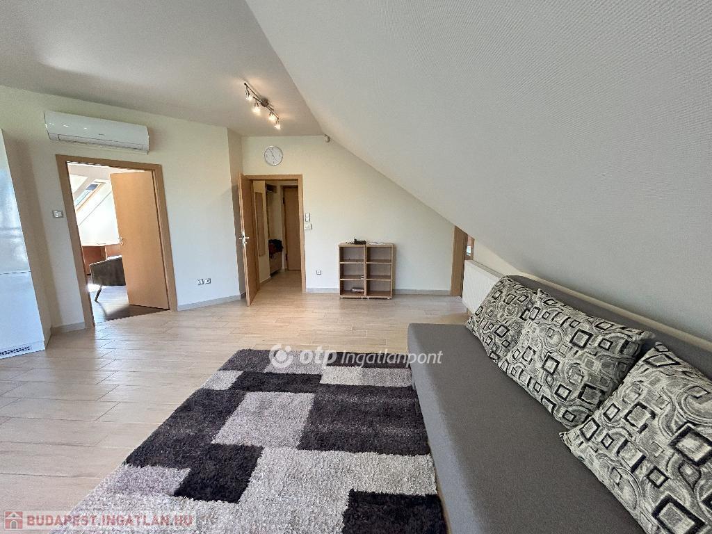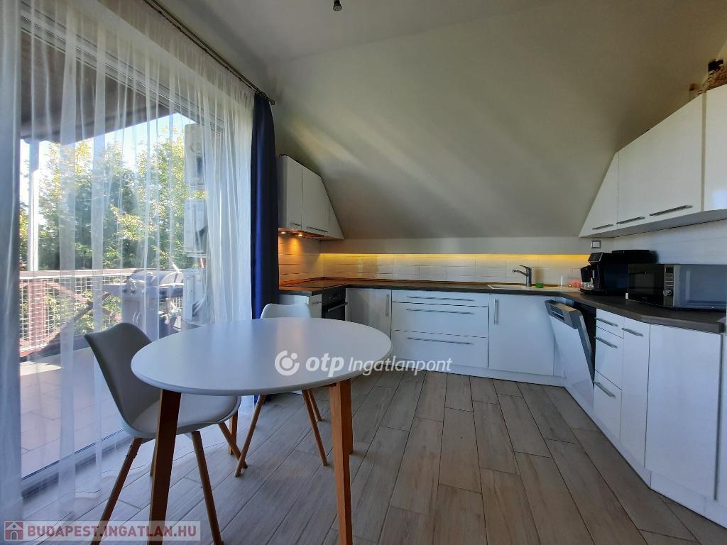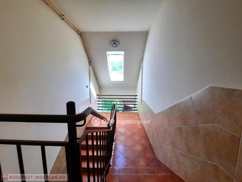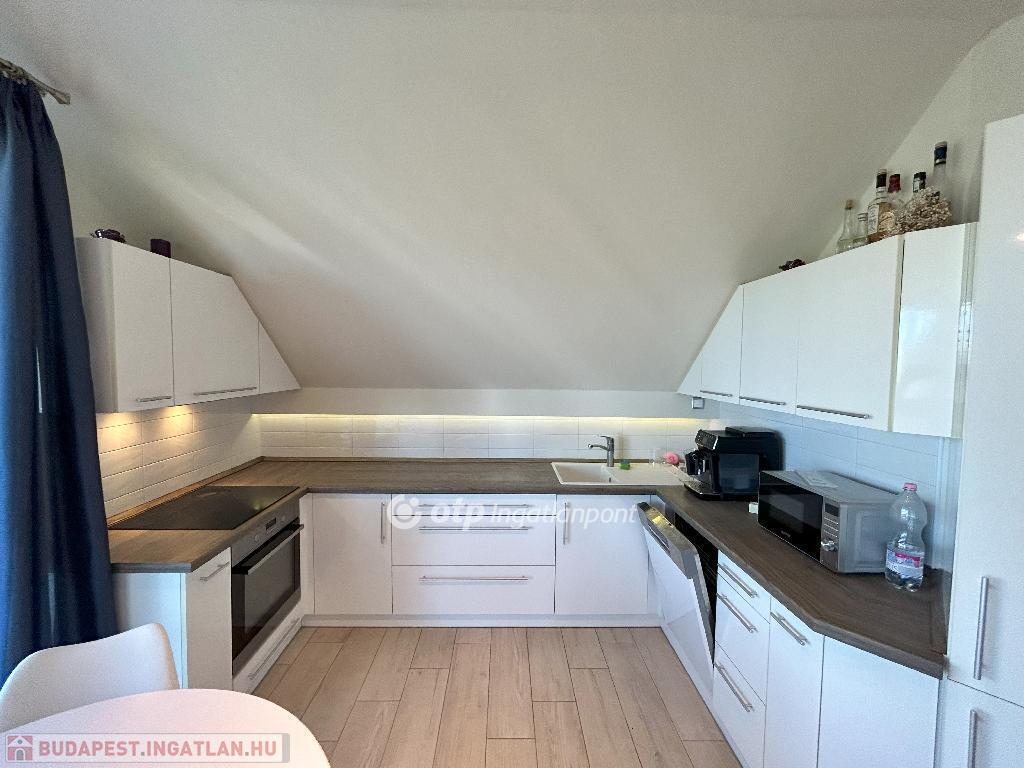 A helyiségeket minőségi burkolatok jellemzik: a hálószobákban laminált parketta, míg a többi helyiségben feszültségmentesítő réteggel ellátott kerámialap található. A tetőtéri ablakokon napelemes, távirányítós redőnyök biztosítják az árnyékolást, a műanyag nyílászárók pedig redőnnyel és szúnyoghálóval felszereltek. A lakás esztétikailag és műszakilag is kiváló állapotban van: új, falba süllyesztett vezetékek, energiatakarékos LED világítás, üvegszálas tapéta, beépített Geberit WC, valamint riasztórendszer távfelügyeleti csatlakozással garantálják a modern kényelmet. A lakáshoz kocsibeálló tartozik.