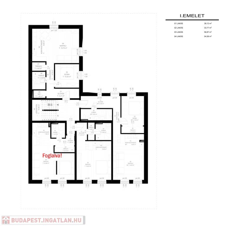 A hirdetésben szereplő 1. emeleti, lakás 57 m2-es.