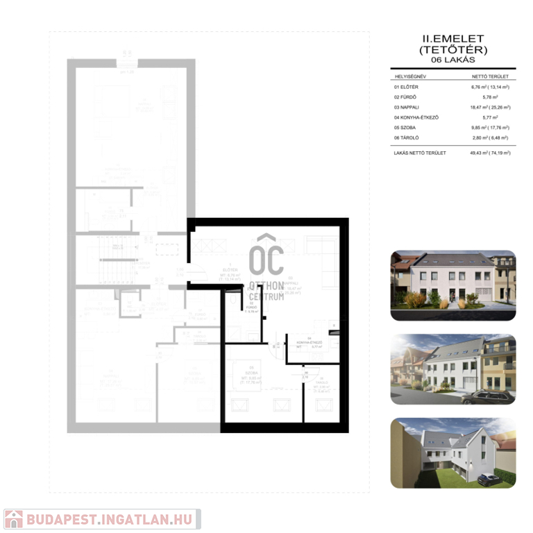 -nettó 50 m2, bruttó 75 m2 lakótérrel