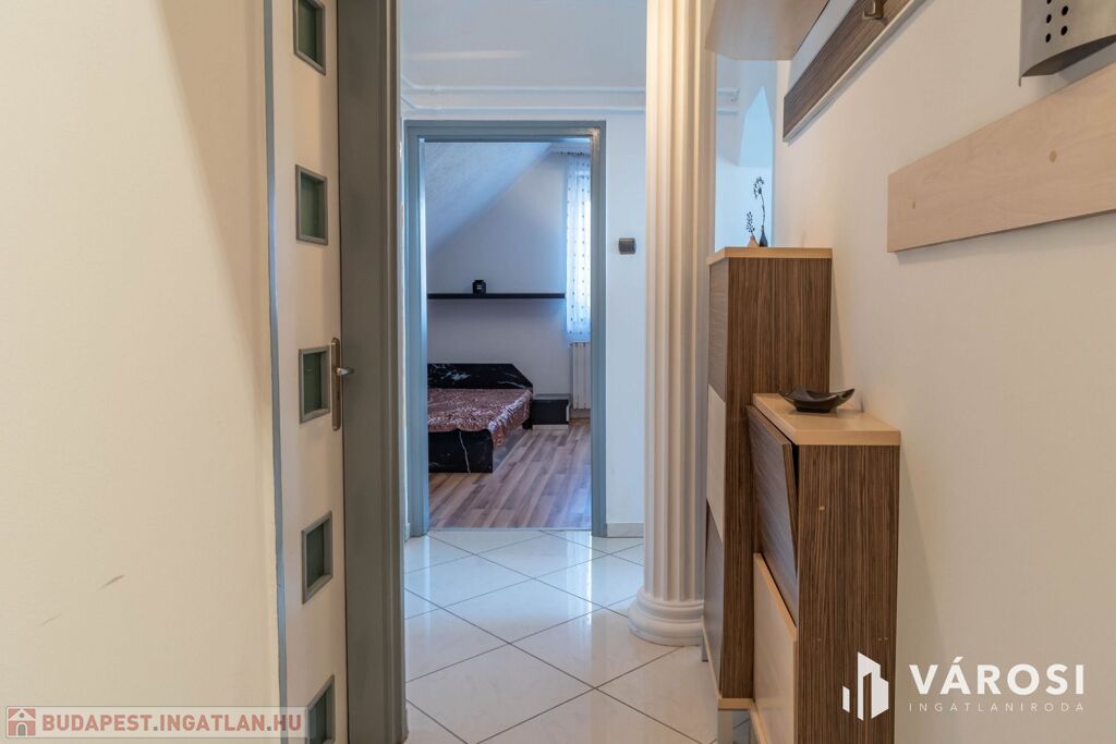 A lakás teljes körű esztétikai felújításon esett át, minden helyiség frissen festett, a fürdőszoba kompletten felújított, a konyha és az előszoba új burkolatot kapott. A fűtést kombi gázkazán biztosítja radiátoros hőleadással, az ingatlan egyedi mérőórákkal rendelkezik. A nyári komfortot klímaberendezés, a megfelelő hőérzetet pedig a szigetelt tetőtér garantálja.
