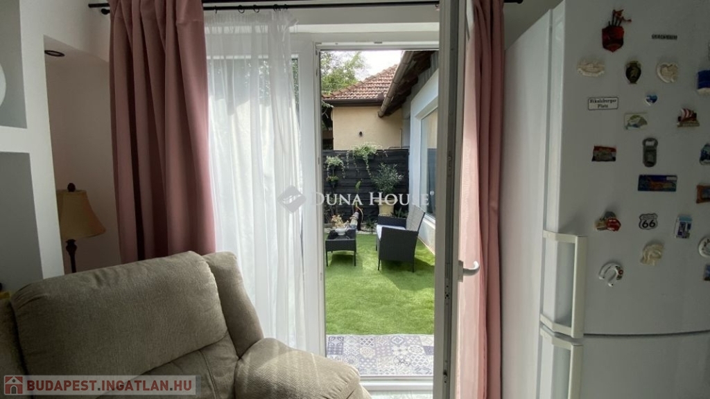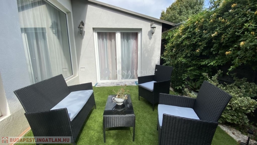 A telek végében saját tágas kert biztosít lehetőséget pihenésre, az udvaron pedig a házhoz tartozó fáskamra és nyári konyha ad plusz tárolási lehetőséget.