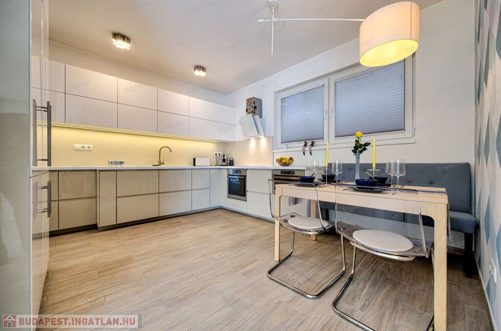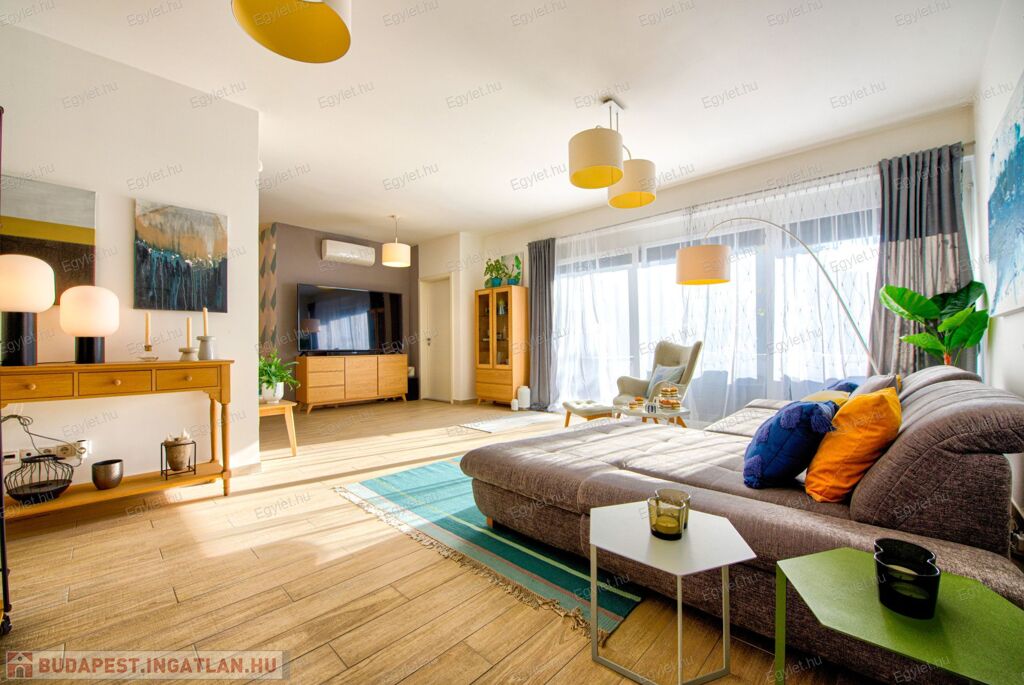 Budaörs szívében a Kő-hegy lábánál, csendes aszfaltozott utcában, 116 m2-es, nappali + 3 hálószoba elrendezésű lakás, igényes új tulajdonosát várja. A 2016-ban épített mindössze 3 lakásos, kétemeletes szigetelt téglaépület földszintjén elhelyezkedő társasházi lakás impozáns 31 m2-es teraszkapcsolattal rendelkezik. Fontos kiemelni, hogy a terasz részben sincs beszámítva a hasznos alapterületbe, a lakás terasz nélkül is lefedi azt a 116 m2-t, ami a tulajdoni lapon szerepel. Az újszerű lakás elrendezése élhető, az intim és a közösségi terek jól elkülönülnek egymástól. A komfortfokozat duplakomfort, hiszen a szülői és a gyermek lakrész is rendelkezik fürdőszobával, WC-vel. A szobák laminált parkettával, míg a többi helyiség járólappal burkolt. A ház fűtését és melegvíz ellátását kondenzációs gázkazán látja el, a túlmelegedés ellen saját split klíma véd, a biztonságról távfelügyeletre kötött riasztórendszer gondoskodik. A közös költség 20.000 Ft, a fűtésátalány mindössze 11.000 Ft. Az esztétikus konyhabútor és a beépített szekrények a vételár részét képzik. A lakáshoz tartozik egy mélygarázsi beálló, melynek értéke további 10.000.000 Ft és kötelezően megvásárlandó. Az ingatlan tehermentes, piaci hitellel hitelezhető, de vételára miatt az Otthon Start Programban nem tud részt venni. A környék közlekedése és infrastruktúrája jó: közlekedési csomópont 6 perc sétára, bölcsöde szintén 6 percre, iskola, óvoda 15 percen belül elérhető gyalogosan, bevásárlóközpont 10 percnyire gépkocsival. Mindent összevetve, ez az igazán „beleszeretős”, nívós lakás igazi otthont nyújt minden korosztálynak, akinek fontos a csend, a rendezett, nyugodt, biztonságos környezet, és fontosak a jószomszédi kapcsolatok. A hirdetéshez csatolt fotók, 3D séta, illetve videó megtekintését követően a felmerülő kérdések kapcsán felkészülten várom hívását a hét minden napján.