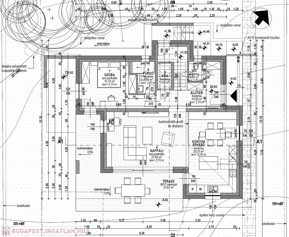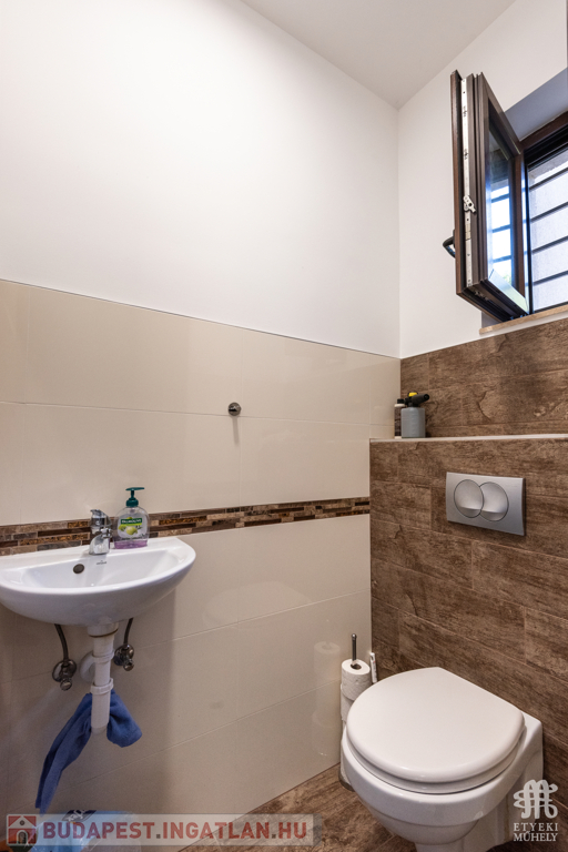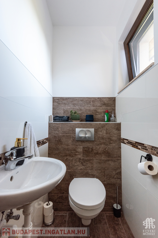 Tájolása tökéletes, reggeltől délutánig beragyog a nap. Az 51 m2-es nappaliba a hatalmas teraszajtóknak köszönhetően kora reggeltől délutánig besüt a nap. A nappaliból és a konyhából is közvetlenül kiléphetünk a 34 m2-es teraszra, ahol a család igazi kényelemben együtt élvezheti a jó levegőt, a kertet és madárcsicsergést. A földszinten található egy önálló fürdőszobával (wc, zuhany, kézmosó) rendelkező szoba, tároló, előszoba, wc és egy 51 m2-es amerikai konyhás nappali. A földszinti hálószoba kiválóan alkalmas vendégszobának, szülői hálónak, idős szülő számára, vagy akár irodának. A kert gondozásához nagy segítséget nyújt az automata öntözőrendszer, és a vízgyűjtő, ami a lehullott csapadékot tárolja az öntözésig.