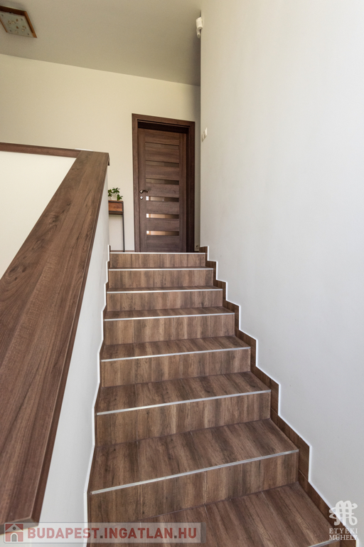 Az emeleten található hálószobákból kettő déli, egy délnyugati tájolású, erkélykapcsolattal. Az északi oldalon található zuhanyzóval, fürdőkáddal és dupla mosdóval rendelkező fürdőszoba, wc és egy háztartási helyiség. Ebben mosógépnek és szárítógépnek is elegendő hely van.