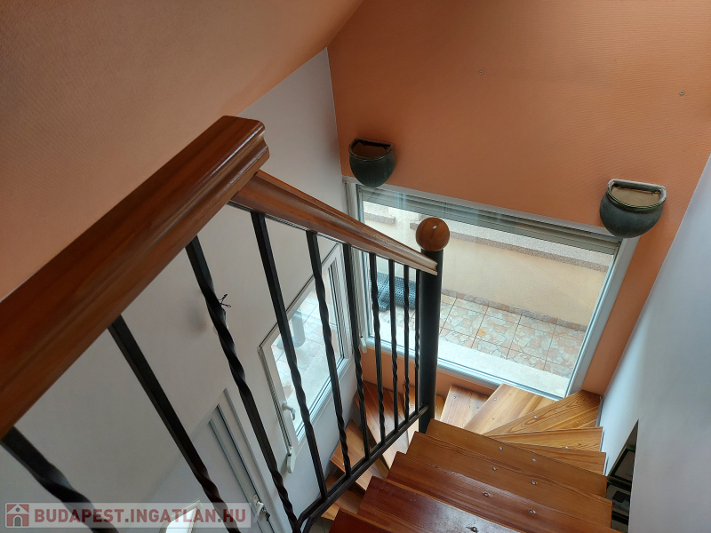 Extrák: tároló, terasz, kerthasználat, panoráma, alacsony fenntartási költség, amerikai konyha, beépített tetőtér, beépített szekrények, boltok a közelben, csendes környék, étkező, iskola a közelben, jó közlekedés, kaputelefon, WC, klíma, központi elhelyezkedés, melléképület, modern szigetelés, nappali, parketta, redőny, riasztó.