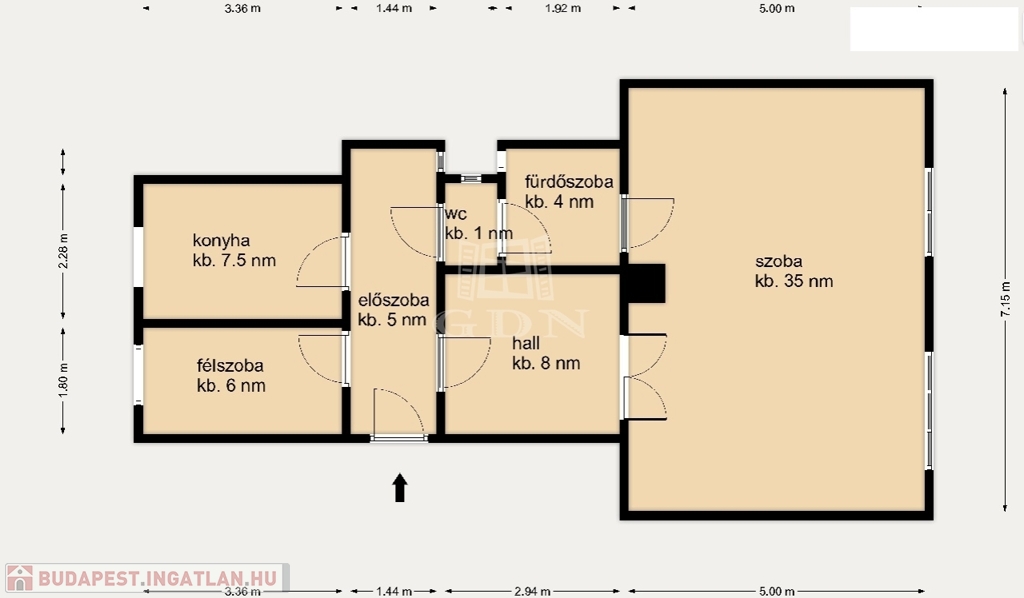 • 1 nagy szoba (35 m² – akár ketté is választható)
