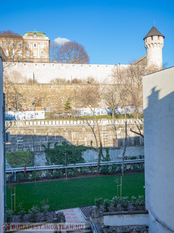 Eladó az I. kerületben a Tabánban, közvetlenül a Budai Vár lábánál a Dózsa György téren egy jó állapotú, liftes, gondozott nagy kerttel rendelkező társasházban lévő III. emeleti, 83nm-es, 3 szoba + konyhás, felújítandó állapotú, DNY-i fekvésű, klímás, napfényes lakás loggiával és szép kilátással a Naphegy illetve a Budai Vár irányába.