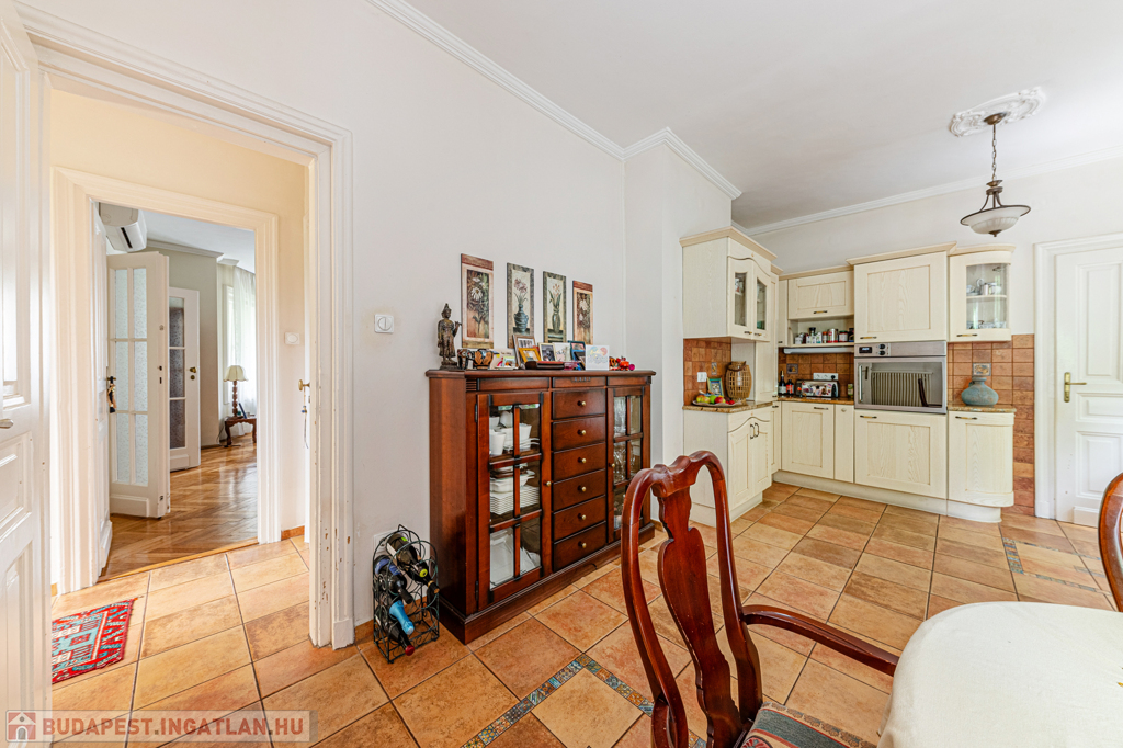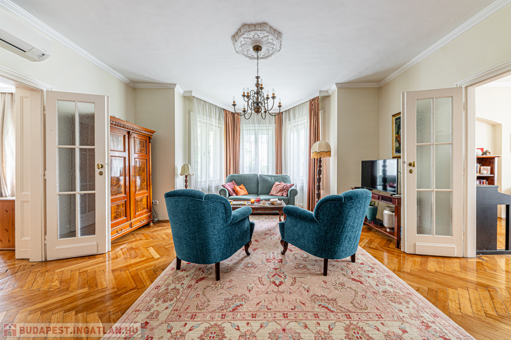 Az átmenő forgalomtól mentes utcában található, 1930-as években épült villa renoválása során tulajdonosai megőrizték az épület eredeti báját, környezetében hasonlóan patinás családi villák és kis létszámú társasházak látványa a jellemző, a lakás 2006-ban történt teljeskörű felújításakor is megmaradt az ingatlan korhű jellege. A modernizált lakásban az eredeti külső- és belső nyílászárók felújításra kerültek, az ablakok hőszigetelést kaptak, árnyékolóként spaletták szolgálnak; a teljes vezetékrendszert kicserélték, a radiátoros fűtésről és használati melegvíz-ellátásról Vaillant fali kazán gondoskodik; igény esetén kandalló telepítésére is adott a lehetőség; az ingatlanban klíma került beépítésre; a lakóknak távfelügyeletbe kötött riasztó rendszer nyújt biztonságot.