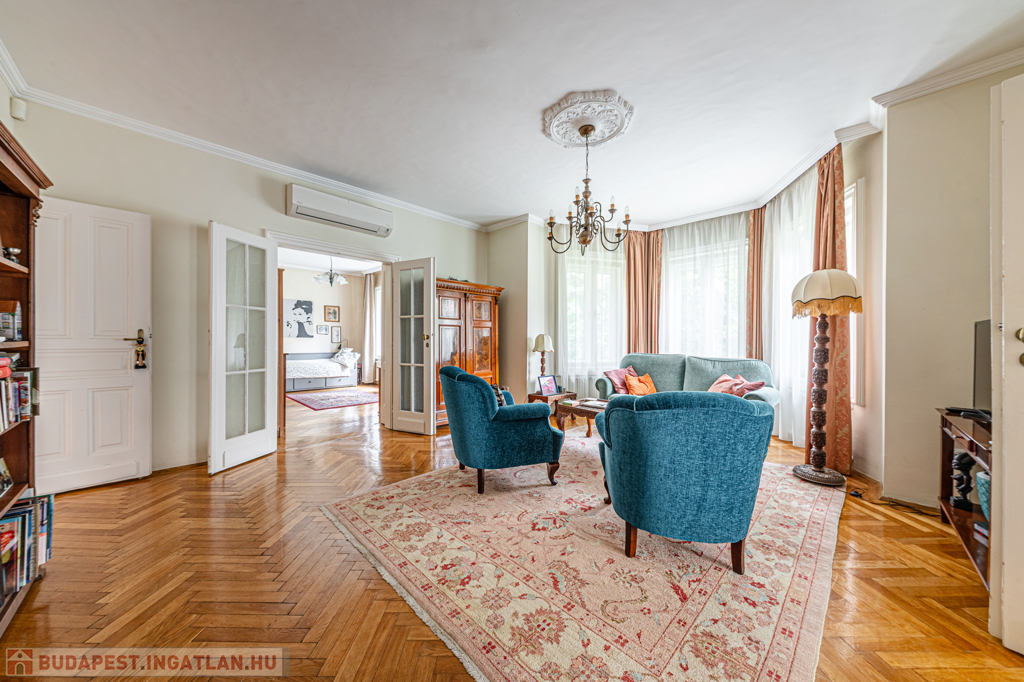 A villaépület másik, emeleti lakása is eladó (+tetőtér beépítési lehetőséggel), így egyben a teljes ingatlan tökéletes választás lehet akár többgenerációs családi rezidenciának a szeparálódás lehetőségével, vagy befektetési céllal - társaházként - lakásonként hasznosítva, ill. cégközpont, nagykövetség vagy magánklinika helyszíneként.