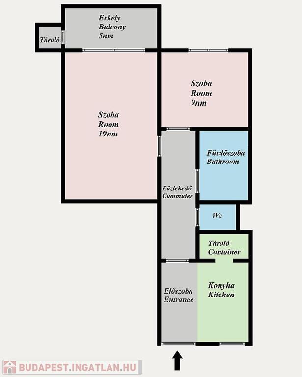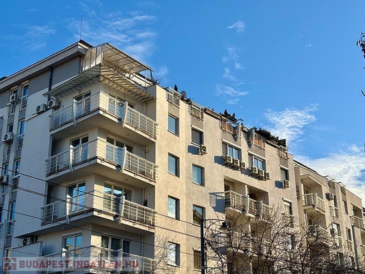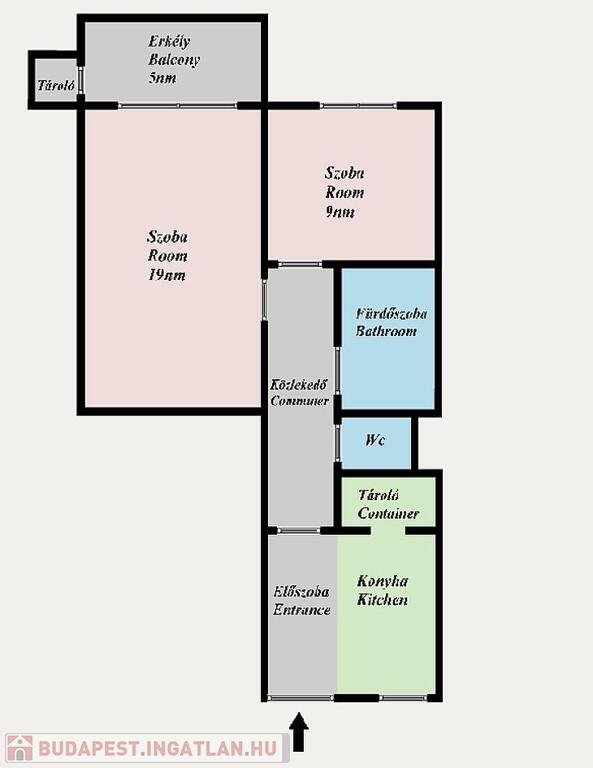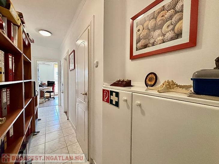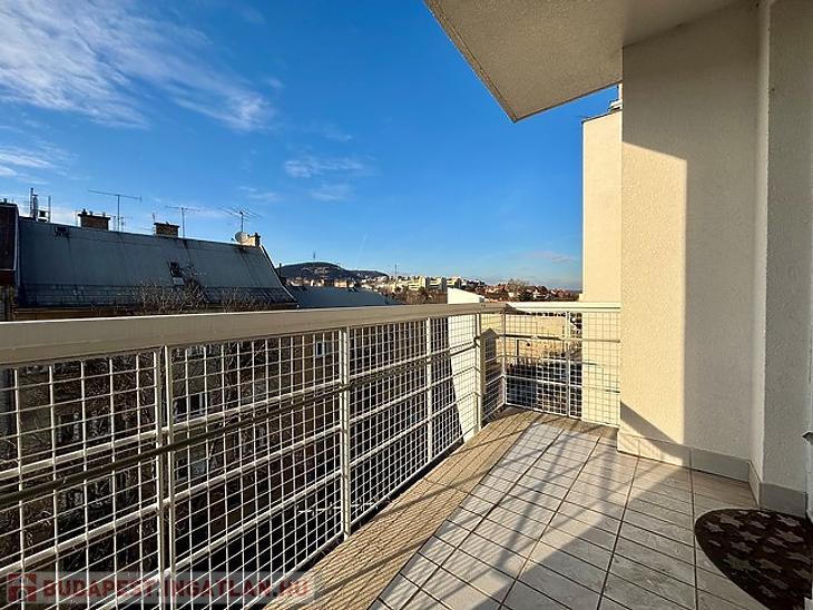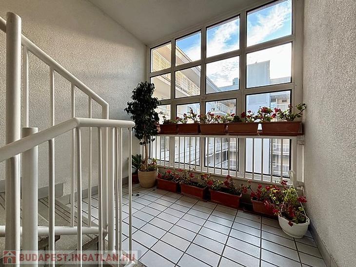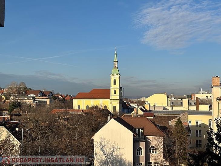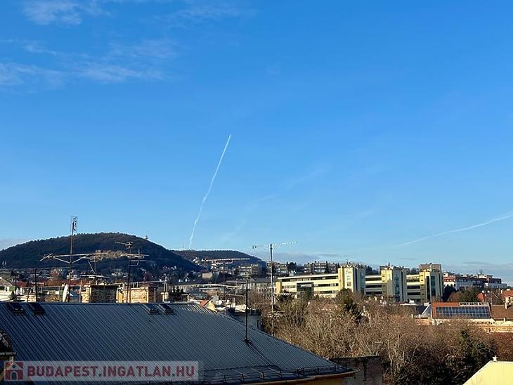 Az ingatlan elrendezése praktikus és kényelmes: két különnyíló szoba, konyha kamrával, fürdőszoba külön WC-vel, valamint egy 5 m²-es, nyugati fekvésű erkély tartozik hozzá, amely lenyűgöző panorámát nyújt a Hármashatár-hegyre.